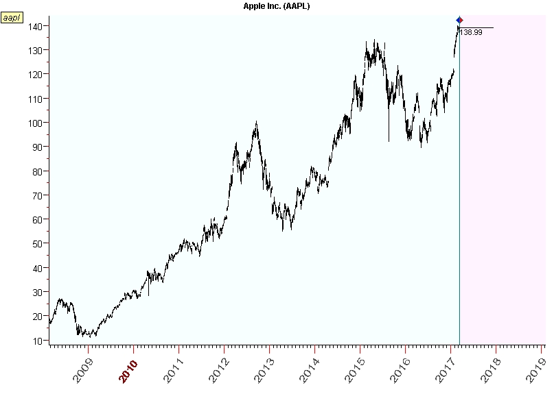 Для примера посмотрите на акции, продукция компании которых знакома всем - компания айфон, извините, Apple Inc.
